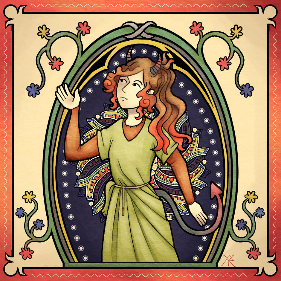 Portrait of you or a character in the style of a medieval manuscript illustration.